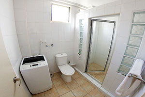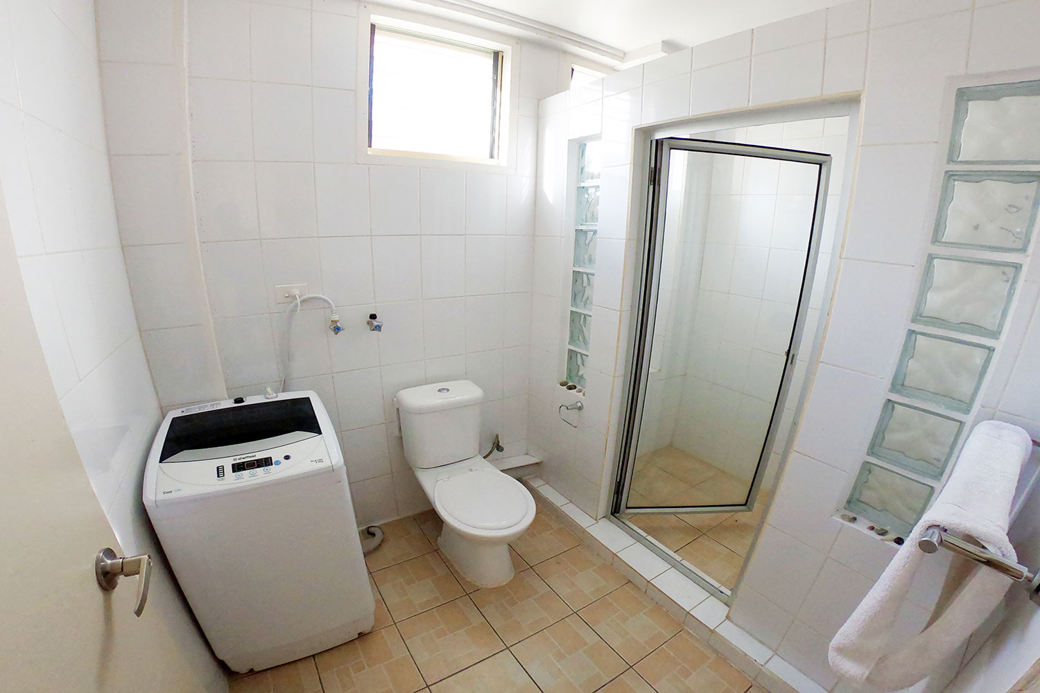 At the back of the apartment is an airy Master bedroom with King size bed, an ensuite bathroom with large shower amd also the laundry area.