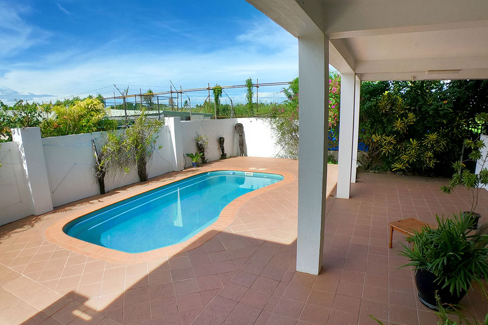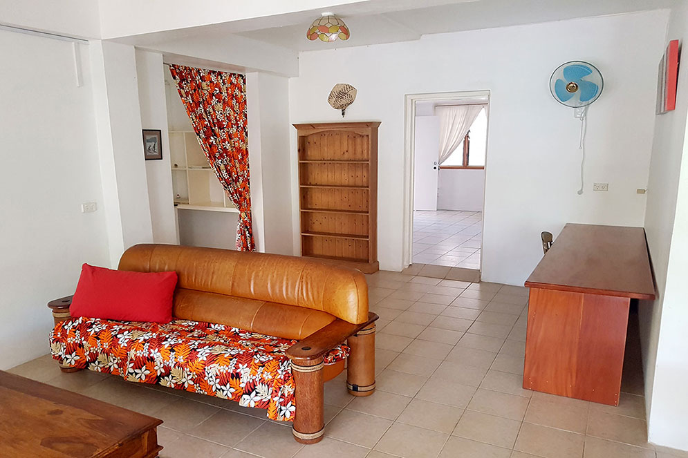 The apartment comes furnished with Pacific Green lounge suite, wall-mounted fan and a bar area with sink and more cupboards. The apartment has air-con and ceiling fan in the main living area, ceiling fan in the front bedroom, air-con in the back bedroom and large breezy windows throughout. Ideal for expatriates working in Nadi - it's less than a minute walk to Smugglers Cove Resort and Wailoaloa beach.