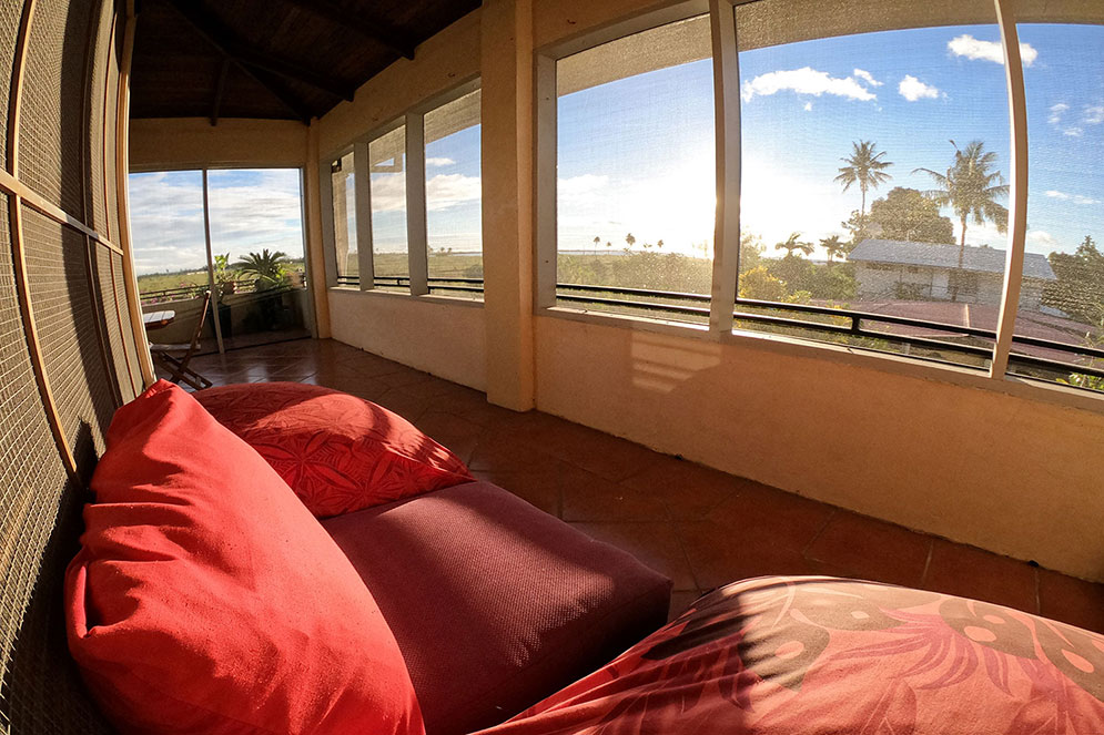 The huge fully screened main veranda extending off the lounge offers stunning sunset and ocean views with glimpses of Wailoaloa Beach - this is one of the most beautiful houses to rent in Nadi.