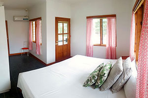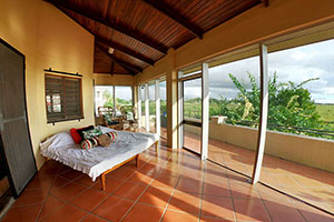 There's also a large outdoor veranda with 180 degree views much of which overlooks the ocean at Nadi Bay. There are two bedrooms. The main bedroom at the front has air-con and a private veranda with a Queen bed. The second bedroom could be used as a quiet study space, storage room or guest room as this house is only available to couples or singles.